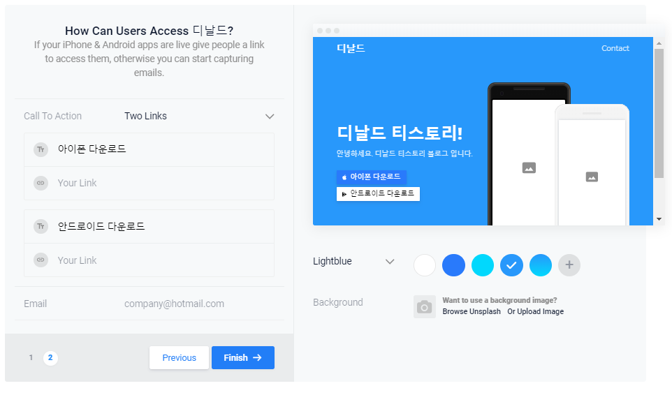 다음은 링크를 넣을수있는 기능들이 있습니다 Get on App Store에는 자신이 원하는 문구를 설정할수 있는 곳입니다 저걸 지우고 문구를 넣어주시면 됩니다! 아래에 있는 Your Link는 원하는 링크를 넣어 주시면 됩니다!
