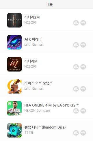 마지막으로 매출 순위 알아보겠습니다~ 모두가 예상했을 거 같은데요 리니지 2M이 매출 1순위를 찍고 있습니다 리니지에 대해 알고 있는 사람들은 리니지가 얼마나 많은 돈이 들어가는지 알 거 같습니다. 3위에도 리니지 M이 있네요 그만큼 리니지의 팬층이 얼마나 두꺼운지 나타내고 있습니다. 2위에는 AFK 아레나가 차지하고 있네요 최근에 광고를 엄청나게 해서 그런지 모든 순위권에 들어가 있는 거 같습니다 이렇게 하나의 게임이 모든 순위권에 들어가 있으면 괜히 한번 해보고 싶은 마음이 생기는 건 저만 그런가요? 아무튼 오늘은 2020년 3월 차 모바일 게임 다양한 순위에 대해서 알아보았는데요 참고하셔서 즐겁게 게임하셨으면 좋겠습니다.