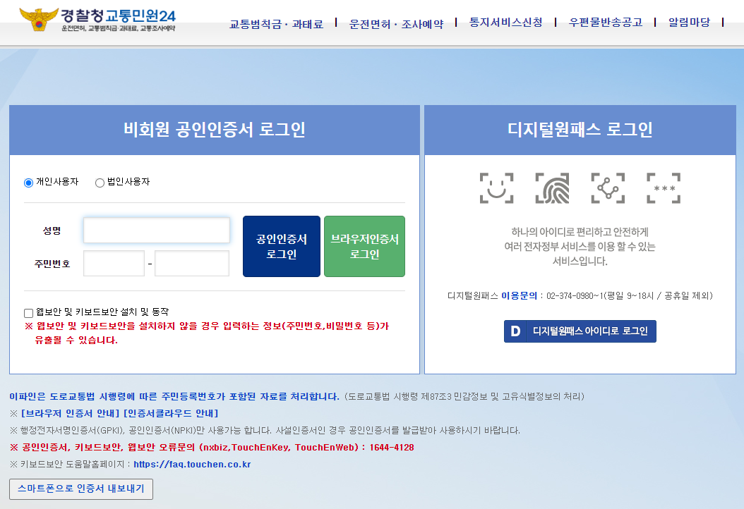 경찰청교통민원24 홈페이지 접속(바로가기 링크 포스팅 하단 참고)