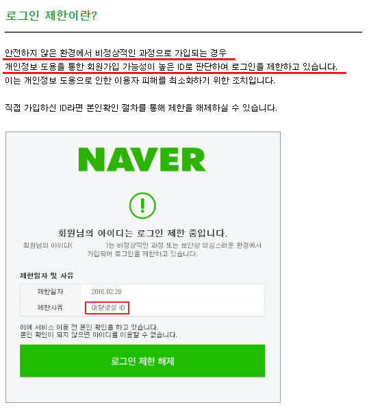 대량생성 ID로 인해 로그인 제한된 경우