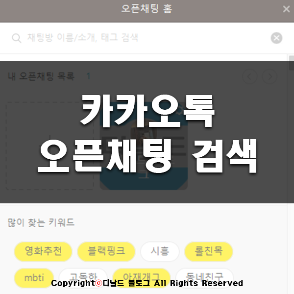대한민국 국민이라면 모르는 사람이 없을 정도로 사용되고 있는 카카오톡에 대해서 알아보겠습니다. 카카오톡의 서비스 기능은 정말 다양하게 있는데 그중 오픈채팅방에 대해 다뤄볼까 합니다. 오픈채팅방이란? 서로 모르는 사람들이 특정한 주제를 기준으로 모여 콘텐츠를 주고받을 수 있는 모임톡이라고 생각하면 됩니다. 오픈채팅방의 특징은 상대방을 친구로 친구 추가하지 않아도 채팅을 할 수 있습니다. 오늘은 이러한 오픈채팅방들을 검색할 수 있는 방법에 대해서 알아보겠습니다.