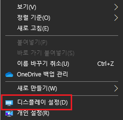 바탕화면 마우스 우클릭 > 디스플레이 설정에 들어가주시면 됩니다.