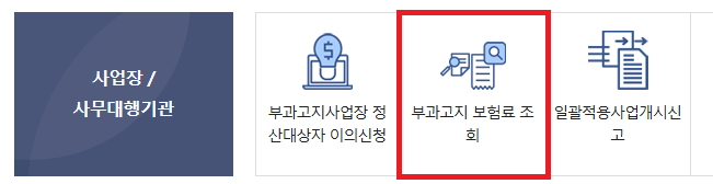 - 사업장 / 사무대행기관 카테고리에서 > 부과고지 보험료 조회 메뉴 클릭 해주세요.
