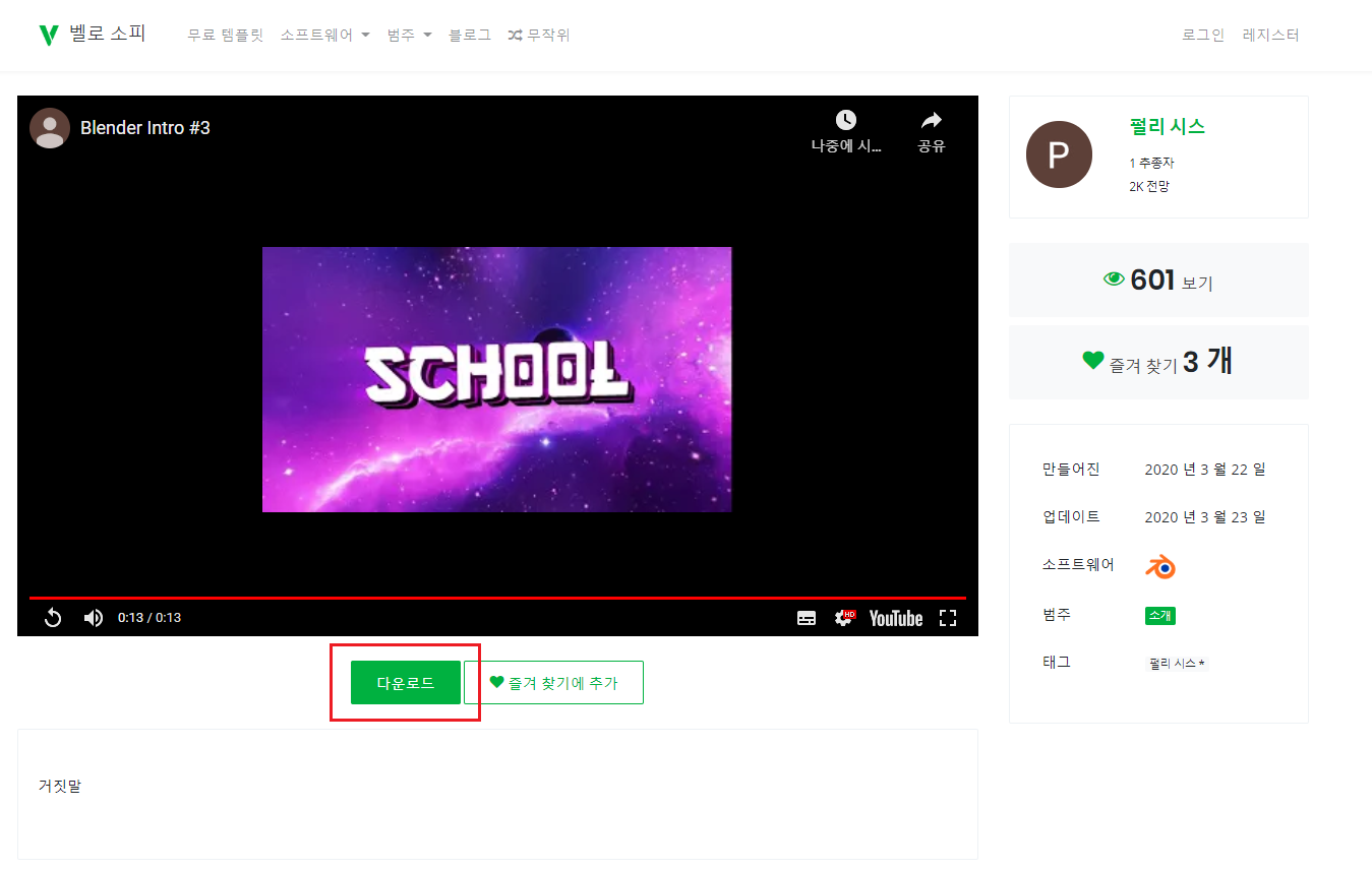 자신 마음에 드는 인트로를 찾았으면 이제 다운로드를 하셔야 합니다. 다운로드 버튼을 클릭 해주신 다음에 다음 화면으로 넘어가 파일을 다운로드를 됩니다. 다운로드된 파일은 바탕화면 및 자신이 저장하고 싶은 곳에다가 저장해주시면 됩니다.