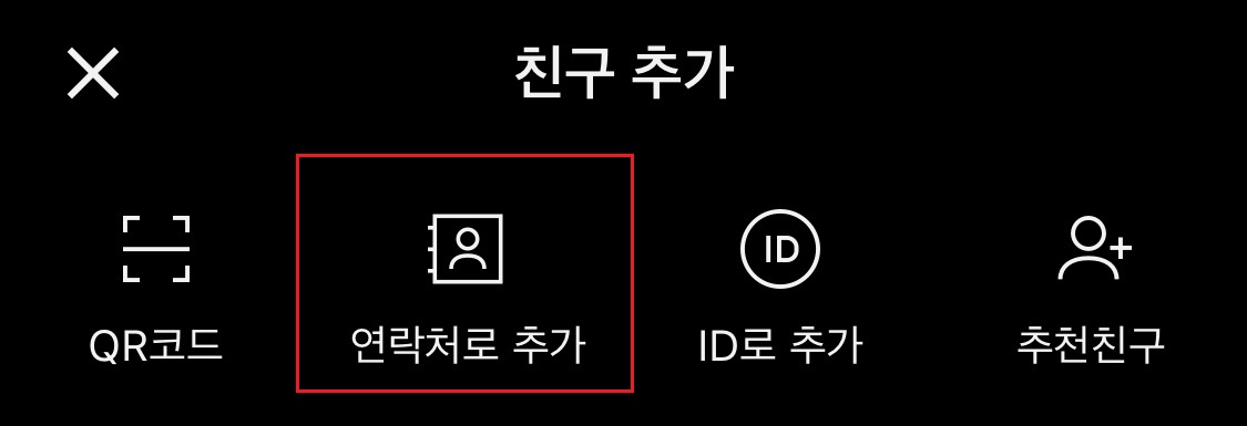 4가지 중 두 번째에 있는 연락처로 추가 기능을 이용해주시면 됩니다. 이 기능을 이용하기 위해선 상대방의 전화번호를 무조건 알아야 되니깐 이 점 유의해주시면 되겠습니다.