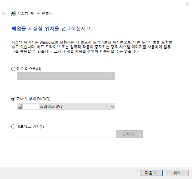 저장할 드라이브 :D를 선택해서 체크하신 후 다음 버튼을 눌러서 저장할 위치를 설정해줍시다.