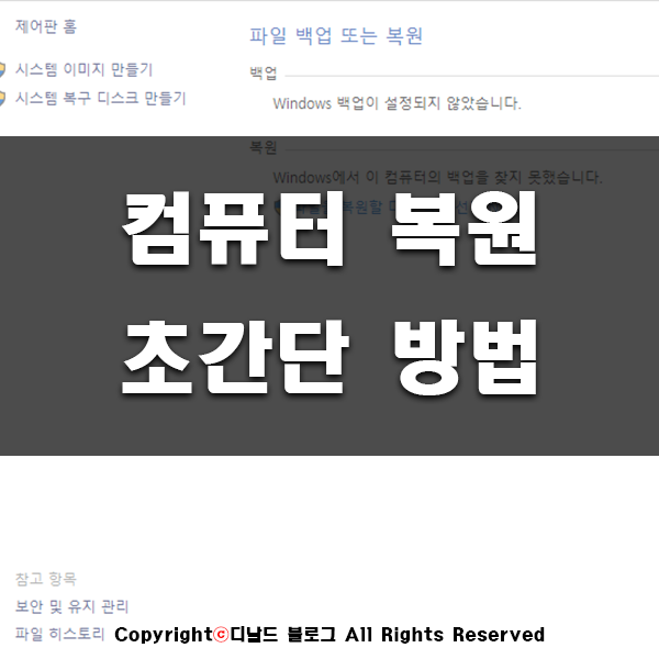 위와 같은 화면이 안 뜨는 경우 보기 기준을 "범주"로 바꿔주시면 됩니다. 시스템 및 보안 카테고리에서 백업 및 복원(Windows 7)을 클릭해서 들어가 줍시다.