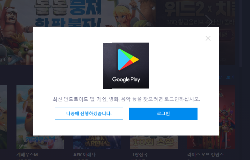 블루스택4 설치를 완료한 후 프로그램을 실행시켜주시면 화면에 로그인 창이 뜨게 됩니다.