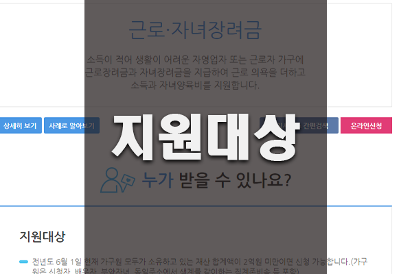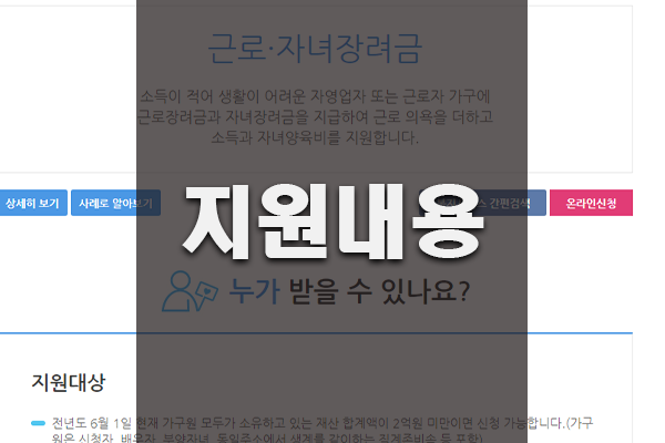 - 근로장려금 지원내용에 대한 설명 입니다.